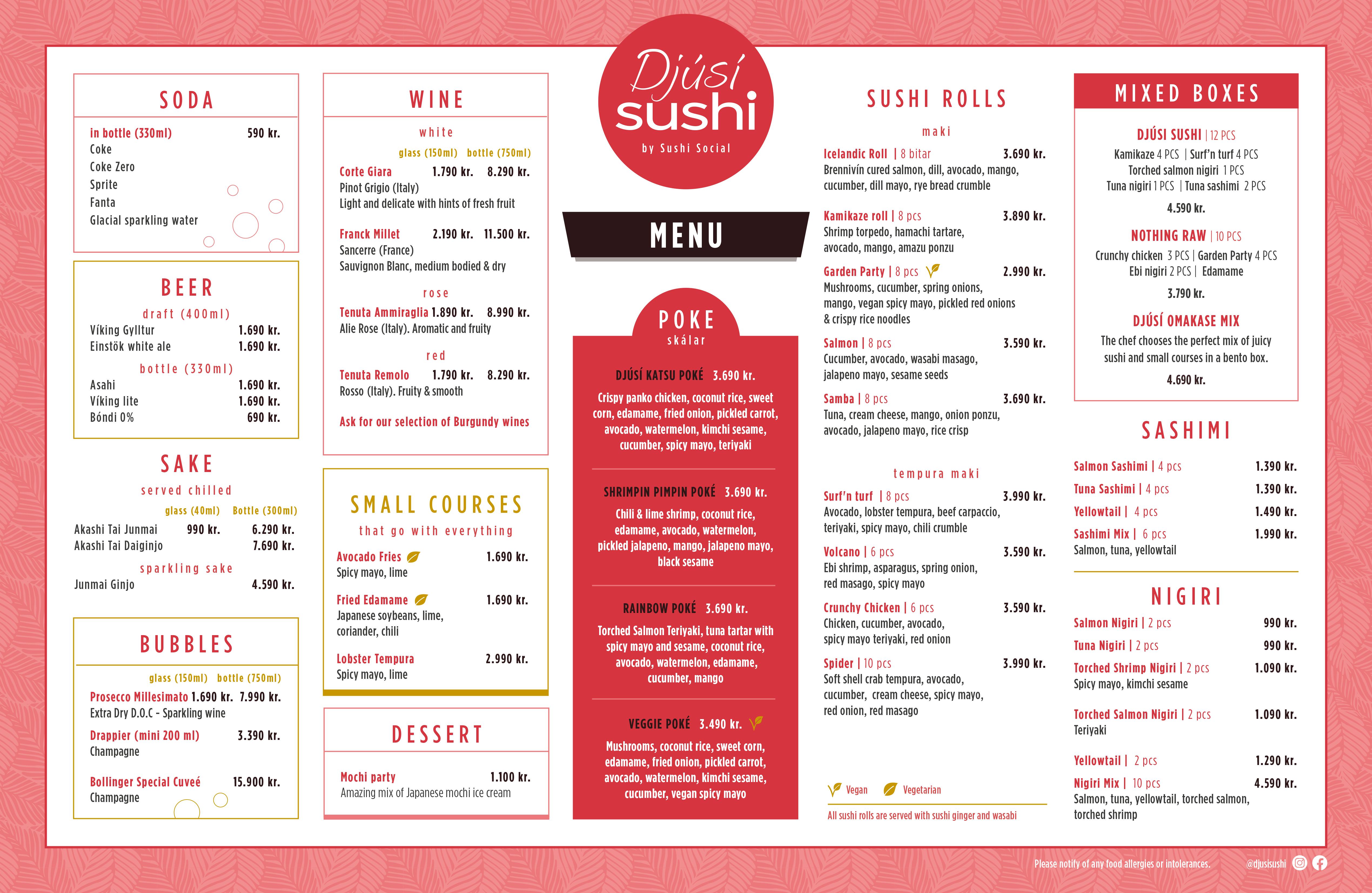 Djúsí Sushi is a sister restaurant of Sushi Social and located at Pósthús Mathöll. The place offers handmade quality sushi, poké bowls and small dishes to enjoy on the spot or to take away.